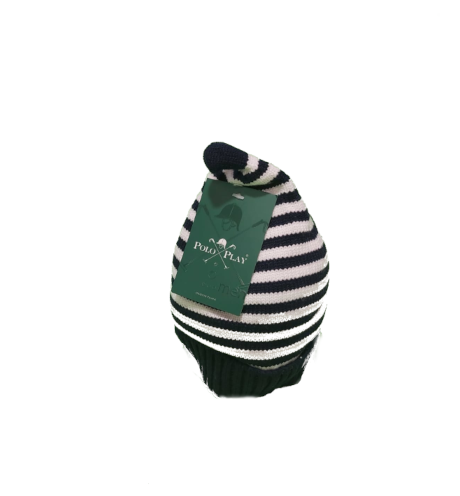 Cappellino bambino, Polo Play, a strisce blu e bianco con interno in calda pelliccia.